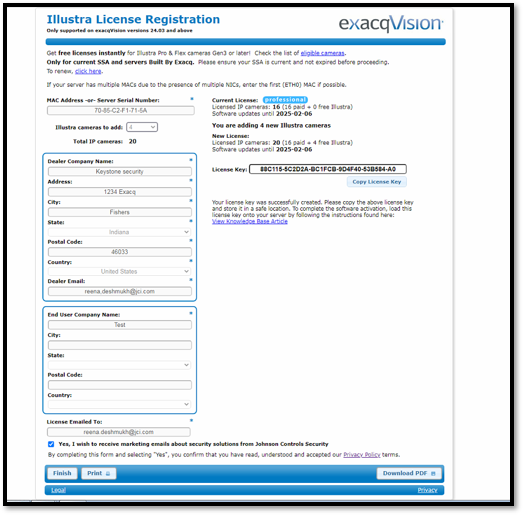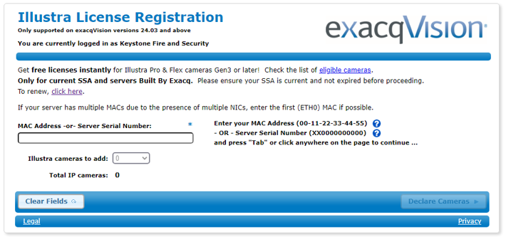 • Register licenses on-demand via 24/7 self-service portal, instantly active for customer to import from file or exacq.com
